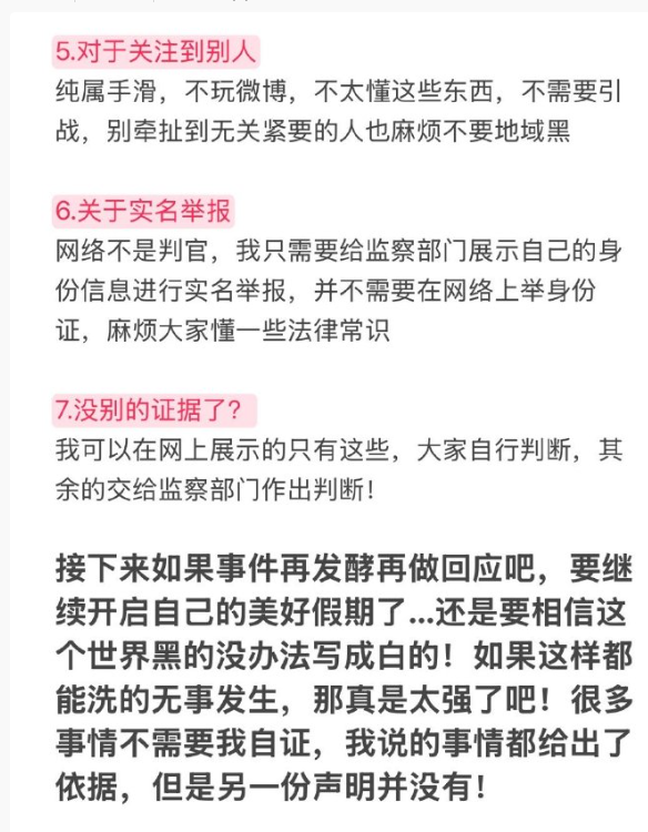 芒果直播平台接下来如果事件再发酵再做回应吧,要继续开启自己的美好假期了…还是要相信这个世界黑的没办法写成白的!如果这样都能洗的无事发生,那真是太强了吧!很多事情不需要我自证,我说的事情都给出了依据,但是另一份声明并没有!